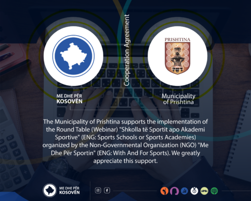 The Municipality of Prishtina supports the implementation of the Round Table (Webinar) “Sports Schools or Sports Academies” organized by the Non-Governmental Organization (NGO) “Me Dhe Për Sportin”. We greatly appreciate this support. ...